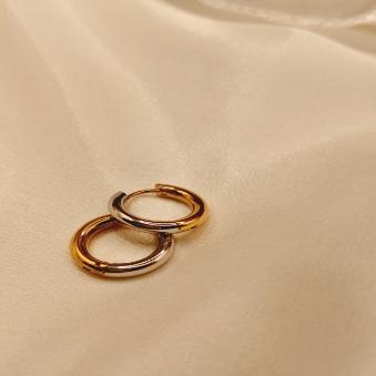 These anti Tarnish hoops have a fantastic, modern edge! Because they mix metals, they are incredibly versatile for everyday wear.
