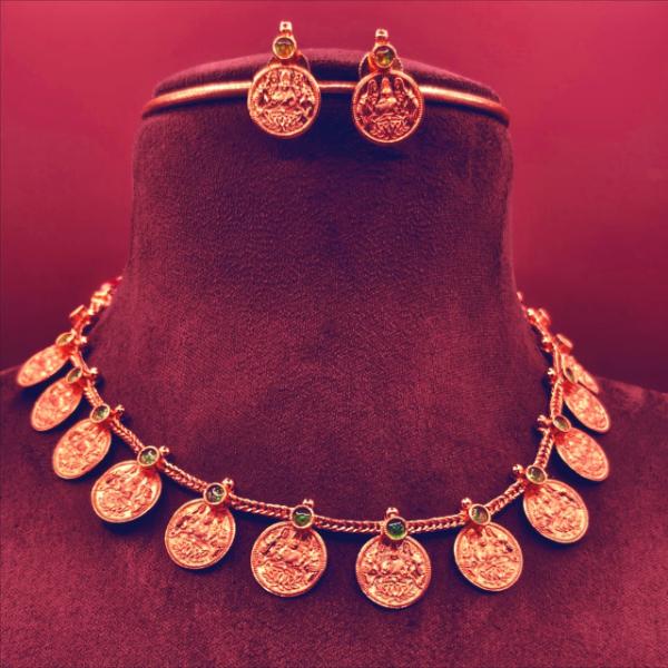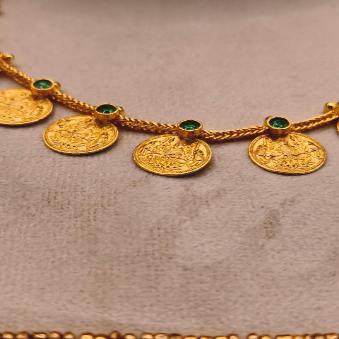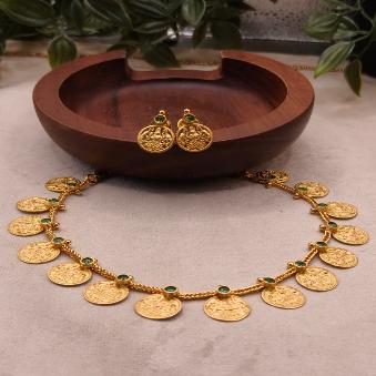 This is a traditional South Indian jewellery set known as a Kasu Mala This style is iconic for its “garland of coins” design and is deeply rooted in heritage and auspiciousness.