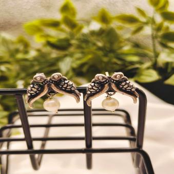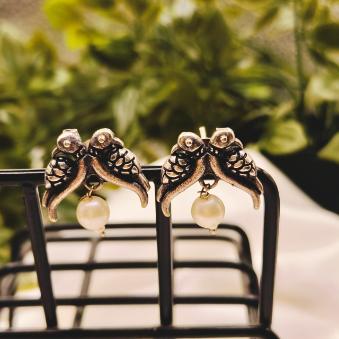 Oxidised twin bird ear studs.