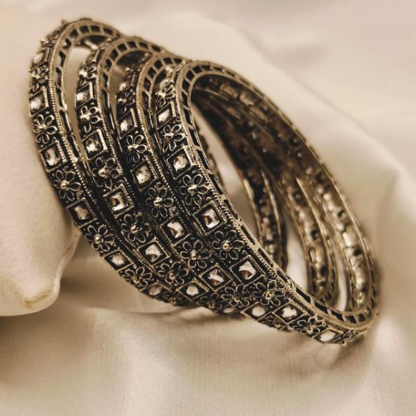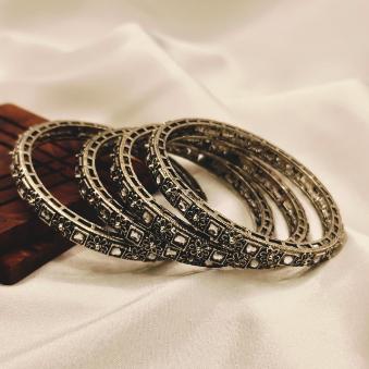 This set of four slender, textured silver rings has a delicate and versatile appeal. They appear to be designed for effortless stacking or subtle single-wear.