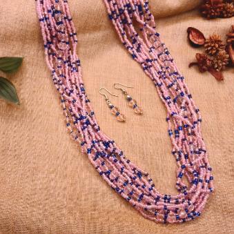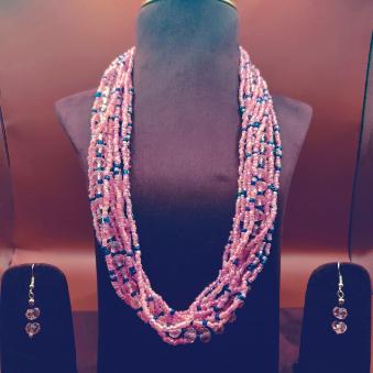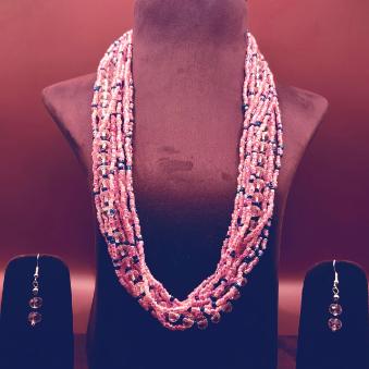 The multi-strand “bib” style combined with the translucent beads gives it a very lush, layered look.